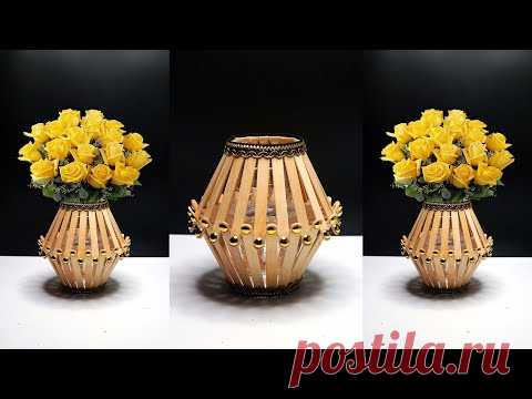 объемная ваза для декор.цветов из палочек, картона, кружева и декора. МК Lista Tsurayya