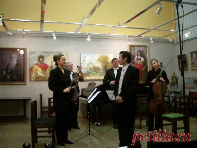 Нгуен Ман Зуй Линь. «Мимолётности» для струнного квартета в 5 частях. Исполняют солисты государственного симфонического оркестра им. Е. Светланова: Светлана Яшина - 1-ая скрипка, Александр Семянников - 2-ая скрипка, Валентин Виноградов - альт, Любовь Стащук - виолончель. 13 февраля 2006 года в концертно-выставочном зале "Гагаринский-4" /г. Москва/.