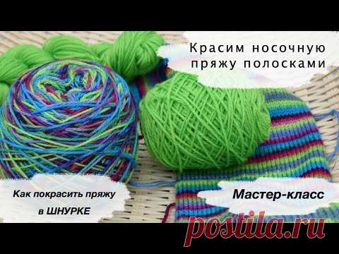 Как покрасить пряжу полосками | Мастер класс | Красим пряжу в шнурке
