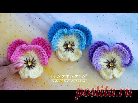 CROCHET PANSY FLOWER - How to Crochet Pansies and Flowers by Naztazia