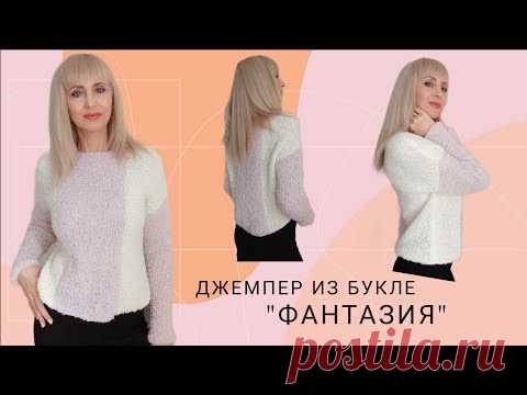 Модный джемпер оверсайз из трендовой пряжи "букле" . Мастер-класс спицами.