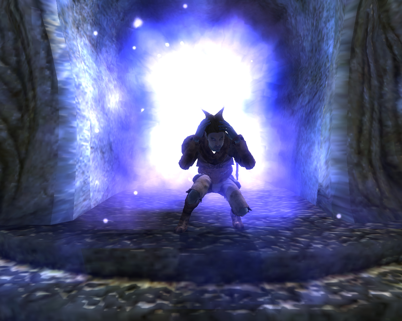 Belmyne Dreleth, a Dunmer emerging from the Strange Door shouting: I won't go back. I won't go back! You can't make me go back! I'll kill you all!