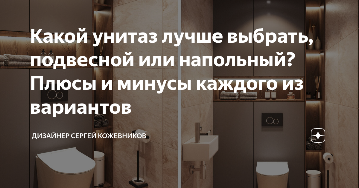 Какой унитаз лучше выбрать, подвесной или напольный? Плюсы и минусы каждого из вариантов Статья автора «Дизайнер Сергей Кожевников» в Дзене ✍: В этой статье я расскажу, какой унитаз стоит выбрать при ремонта санузла, на что стоит обратить особое внимание при покупке, а также как самому