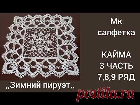 МК салфетка крючком ,,Зимний пируэт,, КАЙМА. Часть 3. ( 7,8,9 ряд)