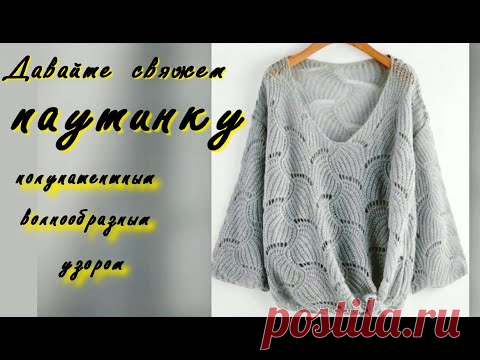 ДАВАЙТЕ СВЯЖЕМ ТРЕНДОВЫЙ, КРАСИВЫЙ ПУЛОВЕР- ПАУТИНКУ ПОЛУПАТЕНТНЫМ ВОЛНООБРАЗНЫМ УЗОРОМ/МАСТЕР КЛАСС