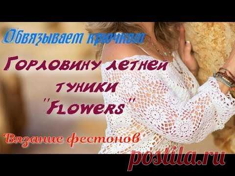 Учимся вязать крючком горловину летнего платья "Flowers". Вязание "фестонов"