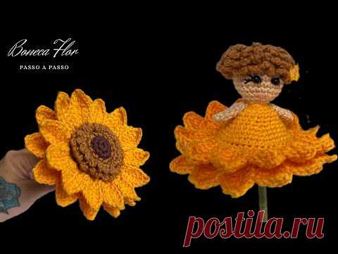 Boneca Flor Mágica/Girassol Amigurumi/passo a passo de crochê por #mirianartesemcroche #mirianlima