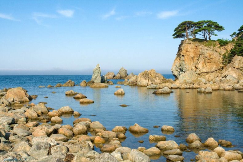 Находится он в районе Японского моря, на южном его побережье, а западная часть раскинулась на берегу залива Петра Великого. Залив неглубокий, но большой.