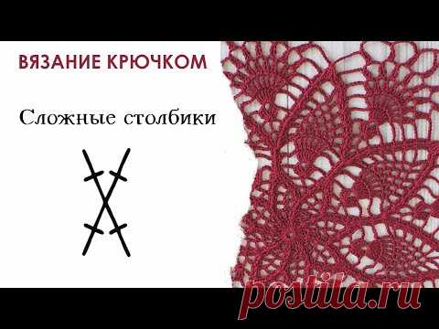 Перекрещенные столбики с 2 накидами. Вязание крючком для начинающих. Урок 5