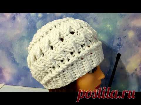 ШАПОЧКА ВЕСНА-ОСЕНЬ ПОПЕРЕЧНЫМ ВЯЗАНИЕМ КРЮЧКОМ. Подробное видео для начинающих.