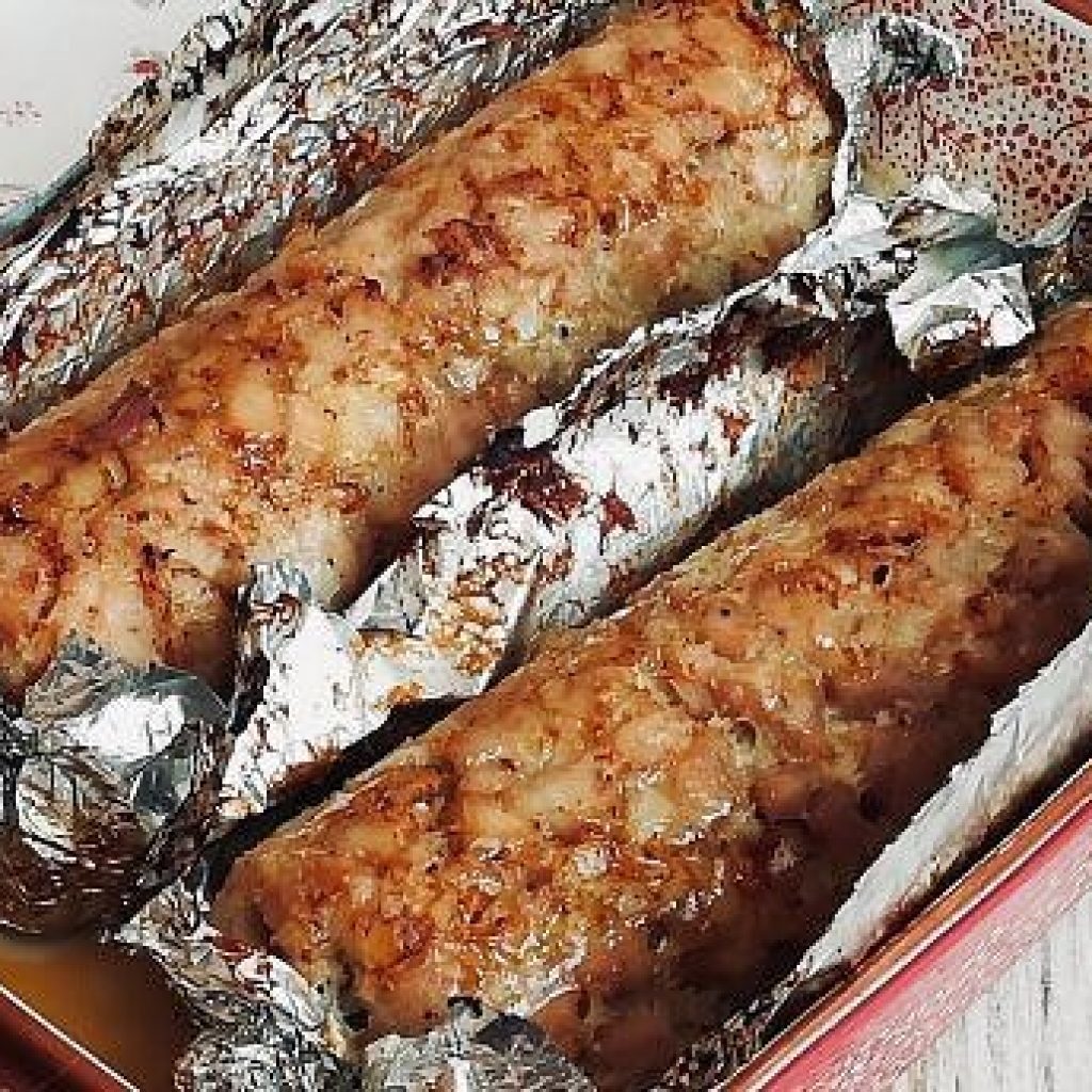 Домашняя колбаса в фольге Ингредиенты: ●Свиная вырезка – 1 кг ●Куриное филе – 700-800 г ●Сало – 200 г ●Яйца – 3-4 шт. ●Чеснок – 6 зубчиков ●Крахмал – 3-4 ст. л. ●Соль – 1,5 ч. л.