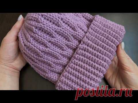 ШАПКА КРЮЧКОМ за вечер из одного мотка. УЗОР СОТЫ