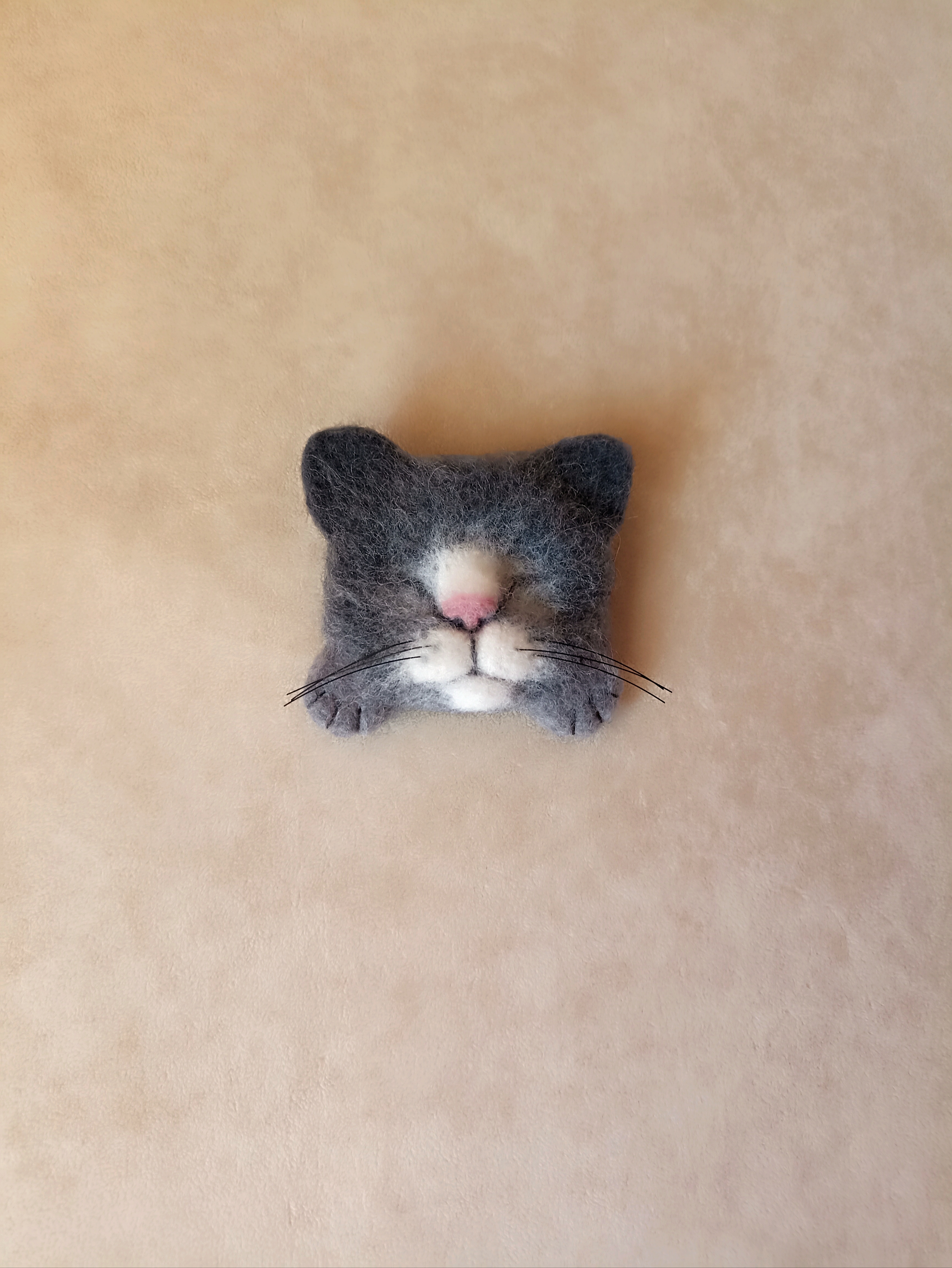 Кот брошь из овечьей шерсти в технике сухого валяния