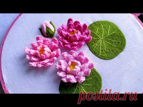 Water Lily / Lotus Hand Embroidery Design | Easy Ways to Embroider | Tutorial Menyulam Bagi Pemula
