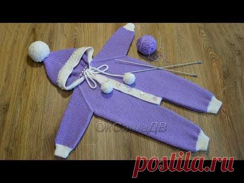 Вязаный комбинезон спицами (размер/рост 68-74, на 6-9месяцев). Вяжем с Оксаной Валерьевной.