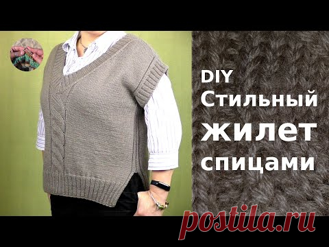 DIY Стильный вязаный жилет безрукавка спицами без швов для женщин