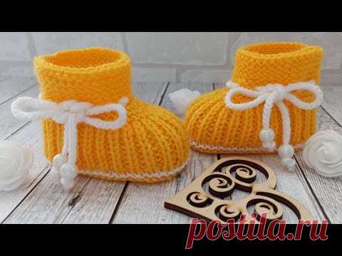 Несложные пинетки спицами/baby booties knitted/Babyschuhe gestrickt