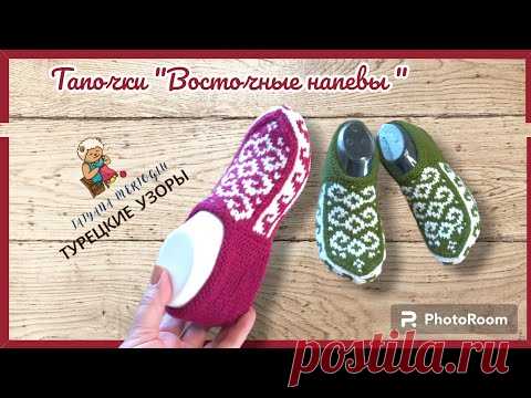 Вязаные тапочки 🧿"Восточные напевы".💚
