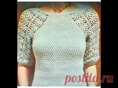 НЕЖНЕЙШИЙ ПУЛОВЕР КРЮЧКОМ ЛЕНИВЫЙ РЕГЛАН АЖУРНЫЙ РУКАВ ПОПЕТЕЛЬНЫЙ МК