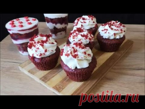 БЕЗ МАСЛА КРАСНЫЙ БАРХАТ Кексы с кремом и вишневым конфитюром