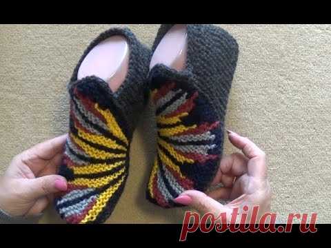 Тапочкис укорочеными рядами. Ссылка на узор под видео