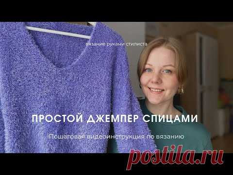 Простой джемпер спицами. Пошаговая инструкция по вязанию.
