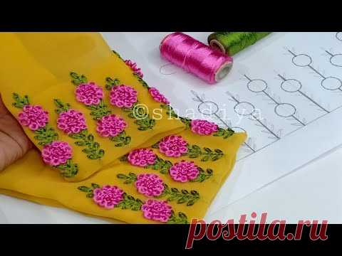 Amazing hand embroidery Ring knot flower sleeve design for kurti salwar|easy sleeve embroidery