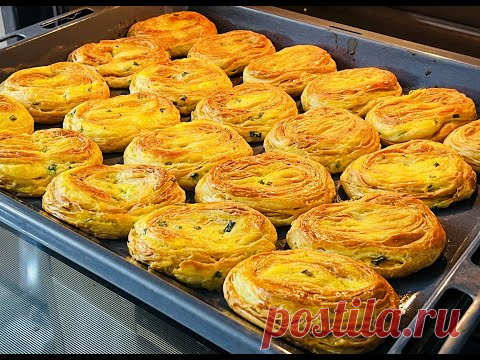 На изображении представлены запеченные пирожные слоеного теста, которые расположены на противне.
