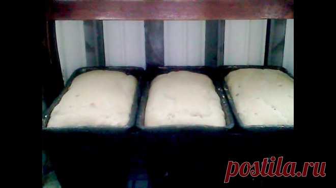 Приготовление теста и выпечка ржаного домашнего хлеба. Тесто заводится с вечера, чтобы утром иметь свежий хлеб. На 3 булки хлеба : 1 ст. л. соли, 1 кубик замороженных сырых дрожжей, 3 кружки воды по 320 гр., 2 к...