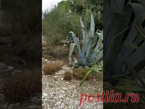 Фотография природы, на которой изображены агавы и другие растения в сухой местности с каменистой почвой.