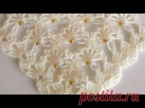 Как связать изящную треугольную шаль крючком простым классическим швом.