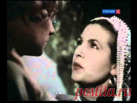 На изображении видны два персонажа, мужчина и женщина, вероятно из старого кино. Их лица наполнены эмоциями, и они кажутся поглощенными разговором. Женщина носит головной убор, а мужчина смотрит на нее с вниманием. Качество изображения невысокое, что указывает на то, что это может быть кадр из старого фильма или телепередачи.