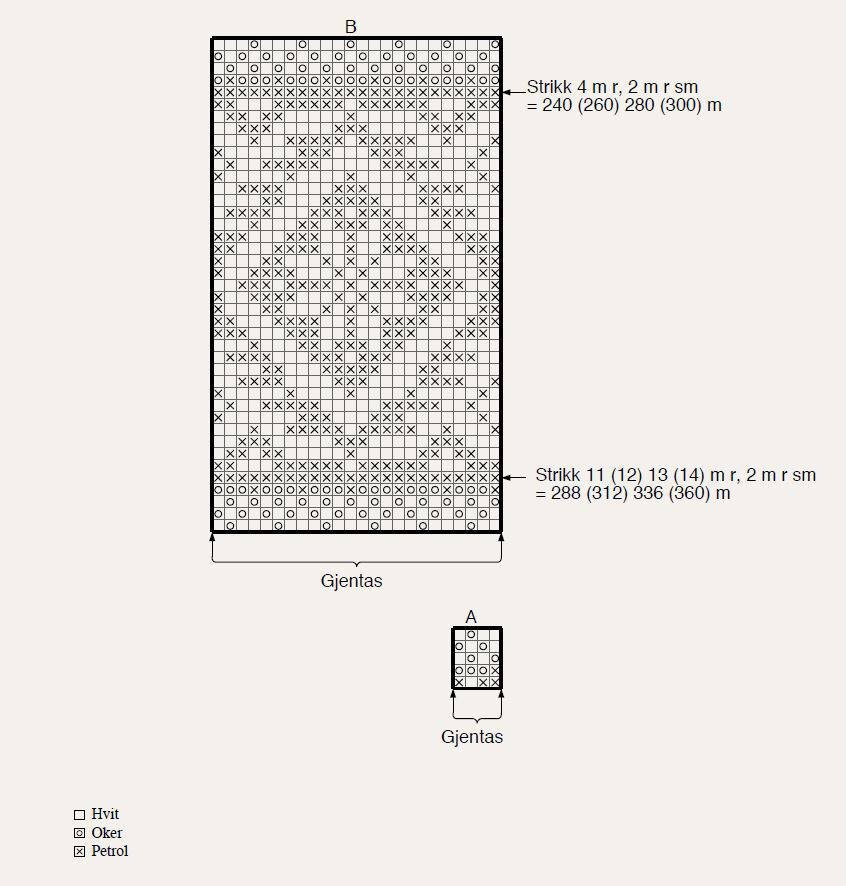 Схема вязания узора спицами. На изображении представлено распределение петель для создания конкретного узора, с указанием размеров и количества петель в зависимости от размера вязания.