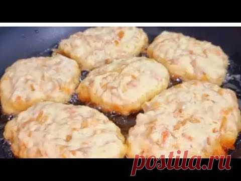 На изображении видно несколько котлет или блинов, обжаривающихся на сковороде с маслом. Они золотистого цвета и кажутся хрустящими снаружи.