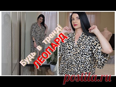 Женщина в платье и пижаме с леопардовым принтом. В интерьере комнаты. Надпись на изображении на русском языке.
