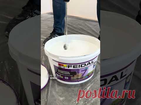 На изображении представлен белый пластиковый ведро с краской марки FEIDAL. Краска белого цвета выливается из канистры в ведро. Фон изображения нечеткий, однако видны обводы каких-то объектов, возможно, это другие емкости для краски или инструменты для покраски.