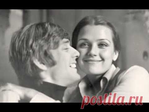 Черно-белое изображение мужчины и женщины, обнимающихся и улыбающихся. Мужчина слева, обращен к женщине, его голова наклонена, и он выглядит счастливым. Женщина справа смотрит прямо в камеру с широкой улыбкой. Они находятся внутри, в неопределенном помещении.