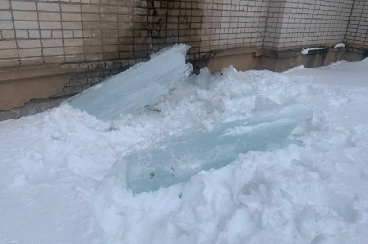 Глыба льда придавила ребенка у школы в Кирове. Восьмиклассника госпитализировали.