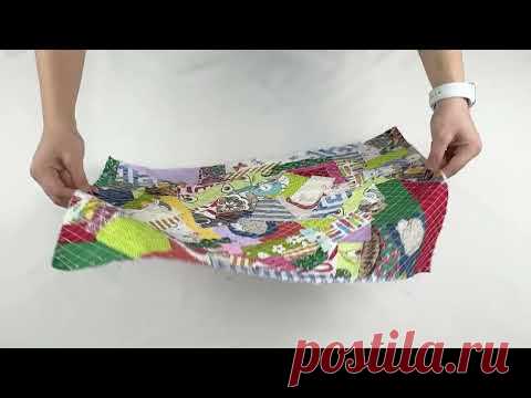 На изображении руки человека держат цветную ткань или предмет одежды на белом фоне. Возможно, это кусок ткани с узором или необычный предмет гардероба.
