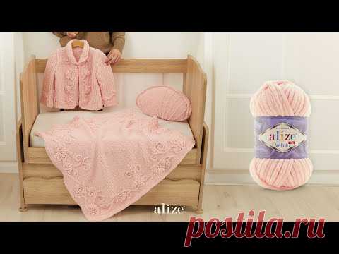 Детское детское одеяло и кардиган с цепной вышивкой от Alize Velluto