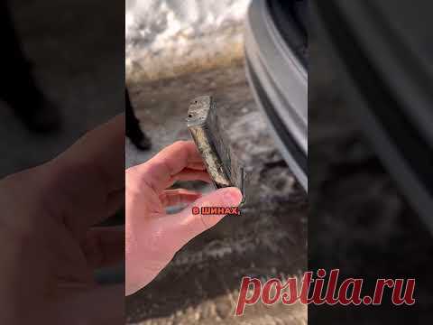 На фотографии изображена рука человека, который держит замерзший жидкий кристалл от дисплея. Кажется, что это часть экрана мобильного телефона или схожего устройства. Фон защищает часть автомобиля и снег.