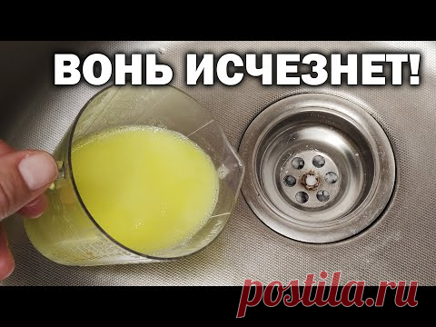 На изображении видна рука человека, который держит стеклянную емкость с жидкостью и выливает ее в кухонную раковину. Надпись на изображении гласит: "ВОНЬ ИСЧЕЗНЕТ!" что предполагает, что жидкость используется для устранения неприятных запахов в раковине. Внизу изображения находится логотип "postila.ru".