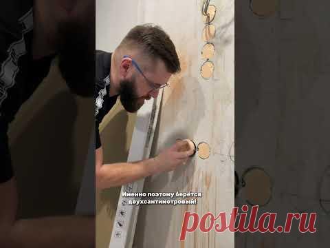 Мужчина производит ремонтные работы, закрывая отверстия в стене. Он использует шпаклёвку или другой строительный материал для заделывания дырок.