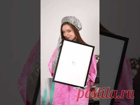 На фотографии изображена девушка, надевшая шапочку для душа и пеньюар, держащая в руках пустую рамку. Около неё находится зеркало.