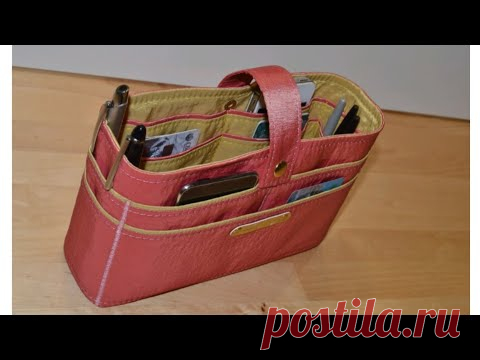 Красный женский кожаный кошелек с отделениями для кредитных карт и других предметов на столе.