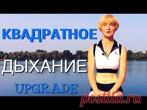 Женщина в спортивной одежде, на фоне водоема, распознаны слова "КВАДРАТНОЕ ДЫХАНИЕ UPGRADE posita.ru"