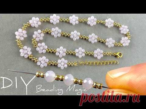 Ожерелье Цветы из бисера: Ожерелье из биконусов | Украшения из бисера своими руками