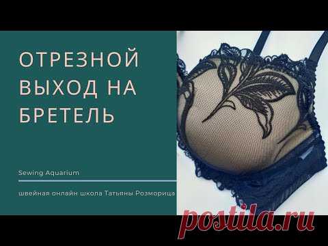 Изображение демонстрирует часть нижнего белья - лифчик с кружевным украшением. На картинке есть текст, который говорит об "отрезном выходе на бретель", что предполагает обучающий контекст, возможно, связанный с шитьем или изготовлением нижнего белья.