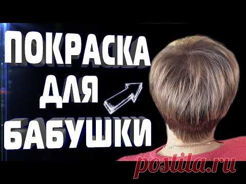 Изображение с текстом "покраска для бабушки" на фоне изображения женщины сзади, показывающее её прическу.