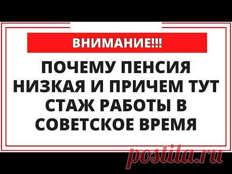 Изображение с текстом на русском языке в рамке с надписью "ВНИМАНИЕ!!!" на верхней части. Текст ниже гласит: "ПОЧЕМУ ПЕНСИЯ НИЗКАЯ И ПРИЧЕМ ТУТ СТАЖ РАБОТЫ В СОВЕТСКОЕ ВРЕМЯ". Это похоже на заголовок статьи или публикации, которая может обсуждать связь между пенсионными выплатами и стажем работы в период Советского Союза.